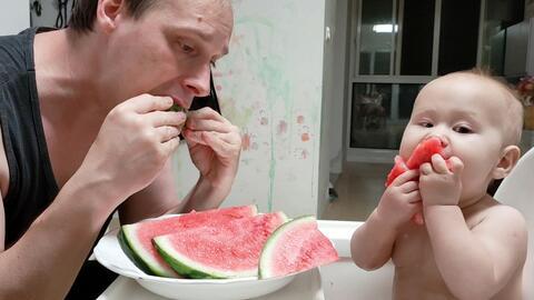 二、爸爸的陪伴:吃瓜时光的温馨